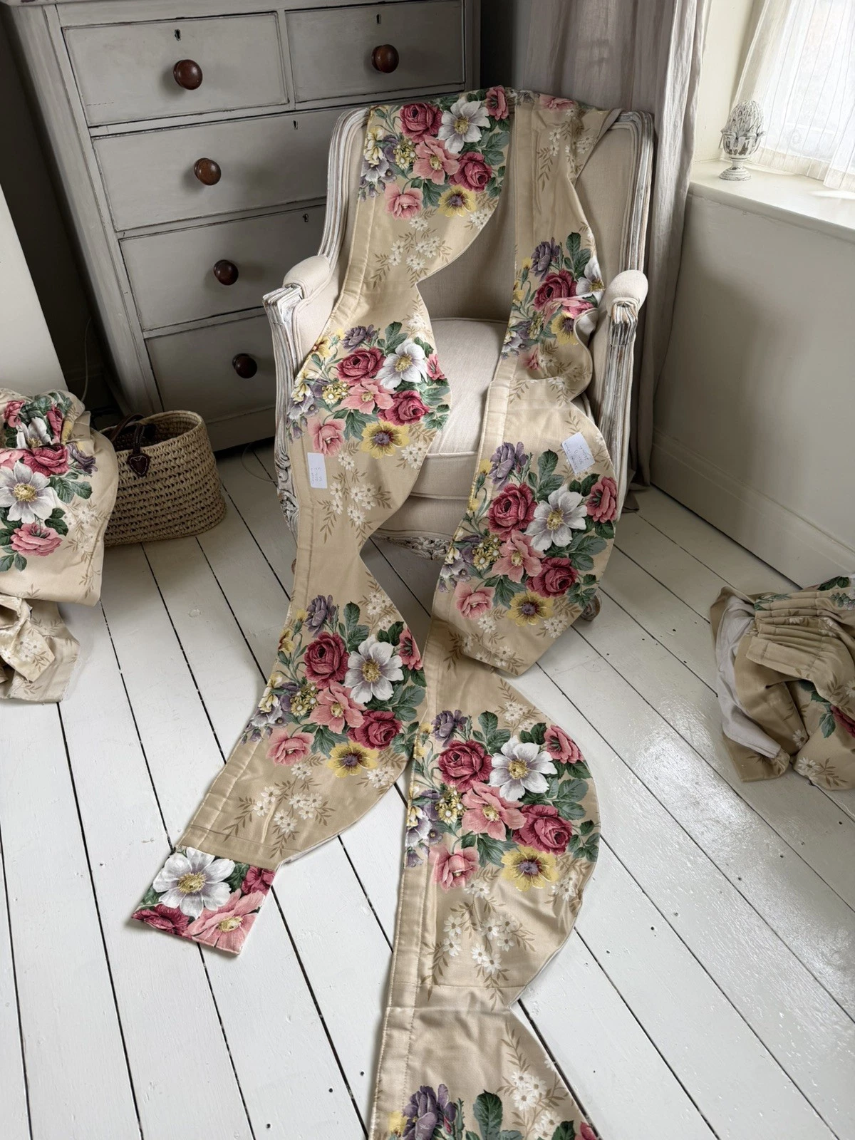 Two curtain pelmets, lined . Size appropriate Pelmet 1 , 260cm long, depth 30cm Pelmet 2 206cm long, depth 30cm
