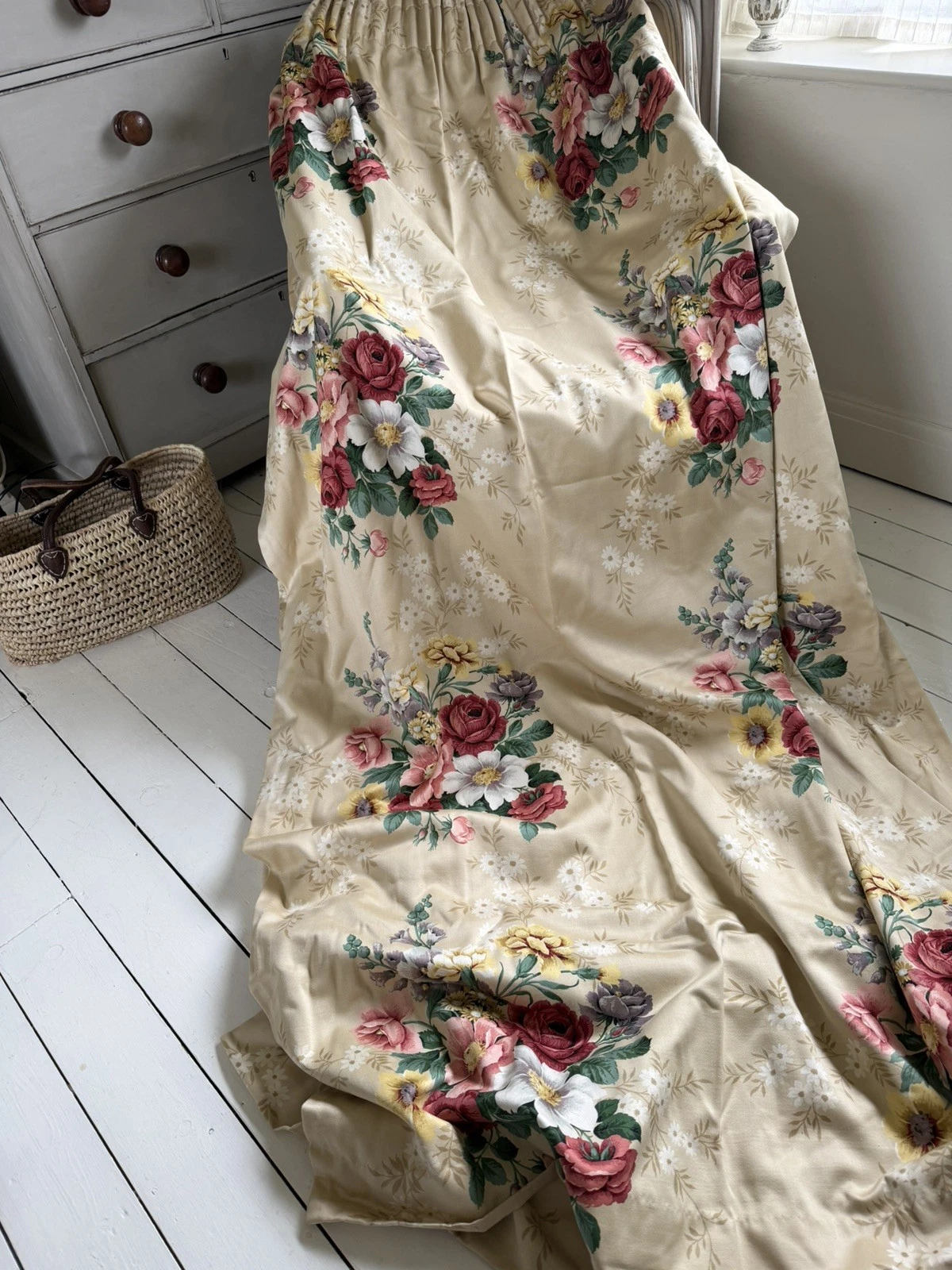 Long vintage Sandersons Floral Curtains 112cm W X 212cm L (Pair 2)