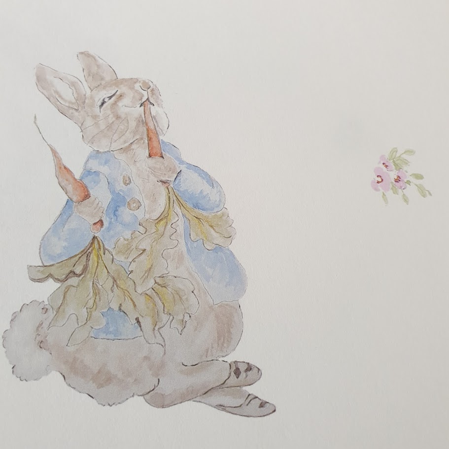 Well, Hello Peter! My gorgeous Peter Rabbit has finally appeared and is available with Pink, Lemon or Blue Flowers, see my other listings. All artwork is my own and @copyright of Rose and Foxgloves.