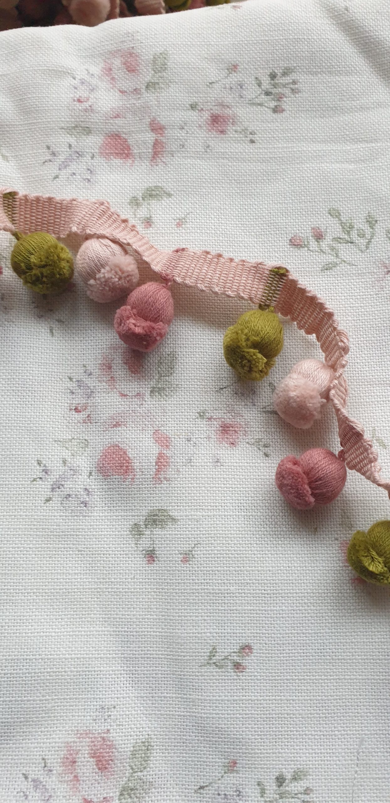 Luxury Small Helebore, Dusky Rose and Citrine Onion Pom Pom Curtain Trimming by Rose and Foxgloves