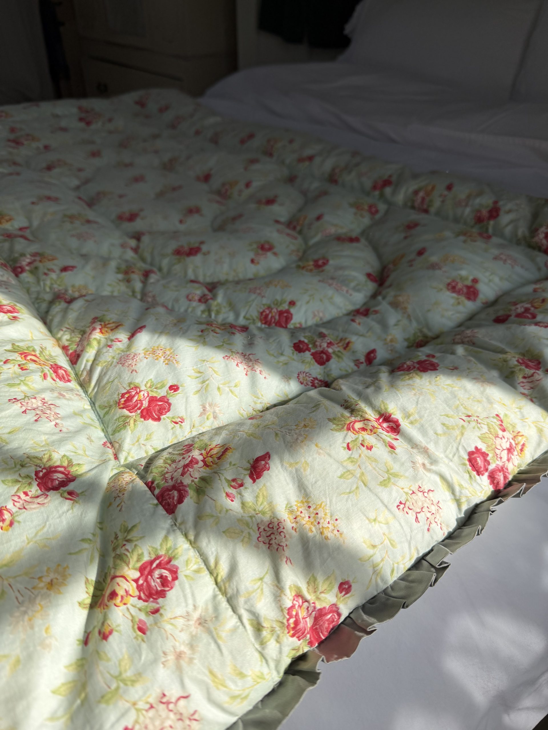 Vintage Green Roses Paisley Feather Eiderdown Pie Crust Edge, 3 Quarter Size W132 x L167cm