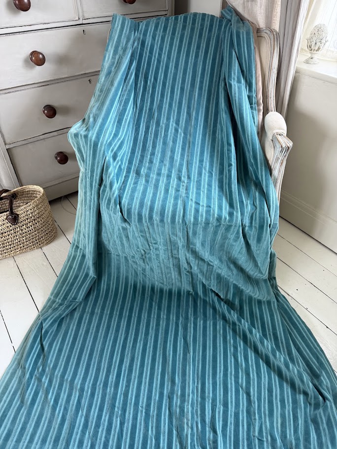 Vintage Peacock Blue Cut Velvet Stripe Country House Curtains 116cm Wide By 207cm Long